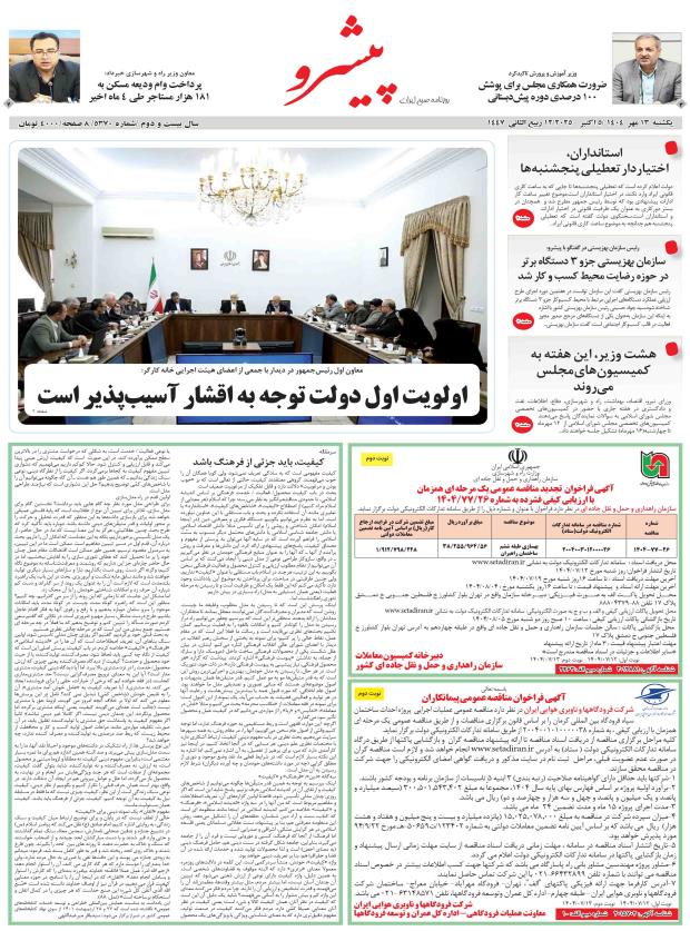 ۱۴۰۴ يکشنبه ۱۴ مهر - شماره 5370