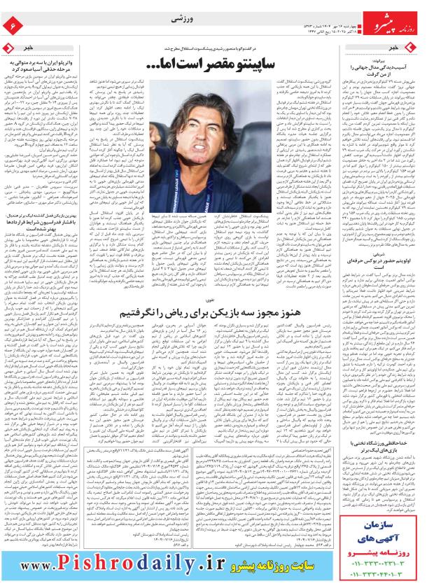 ۱۴۰۴ چهارشنبه ۱۷ مهر - شماره 5373