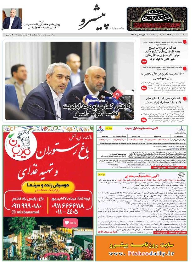 ۱۴۰۴/۸/۲۲ - شماره 5398