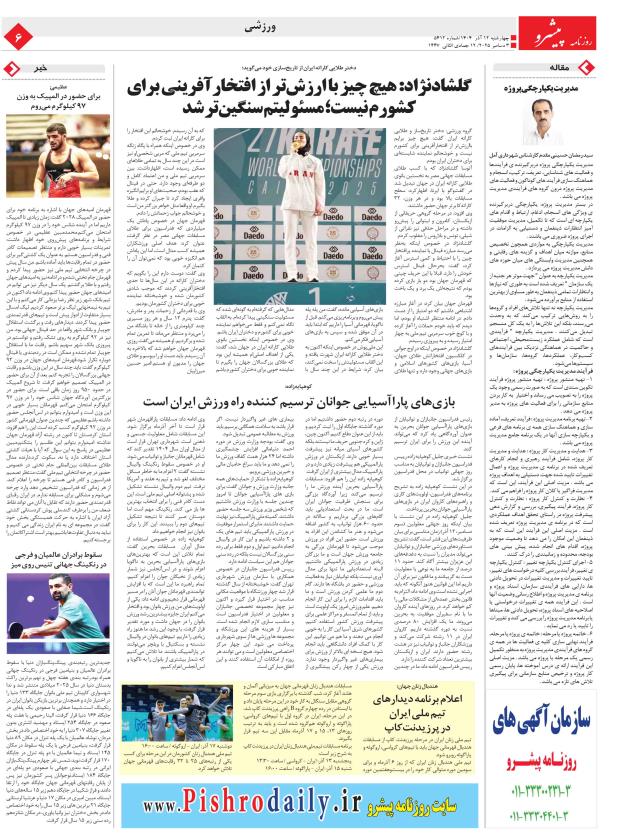 ۱۴۰۴ چهارشنبه ۱۳ آذر - شماره 5412