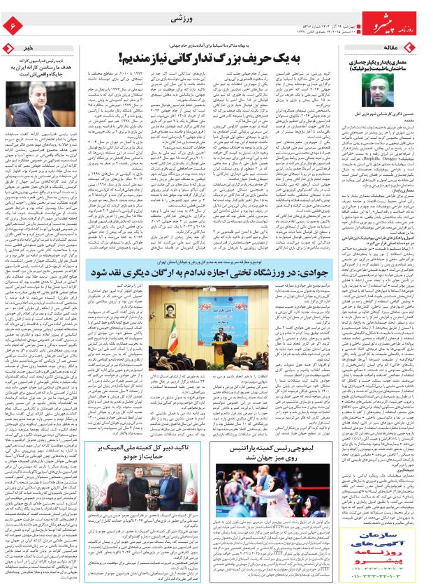 ۱۴۰۴ چهارشنبه ۲۰ آذر - شماره 5417