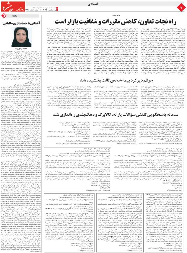 ۱۴۰۴ سه شنبه ۱۲ آذر - شماره 5410