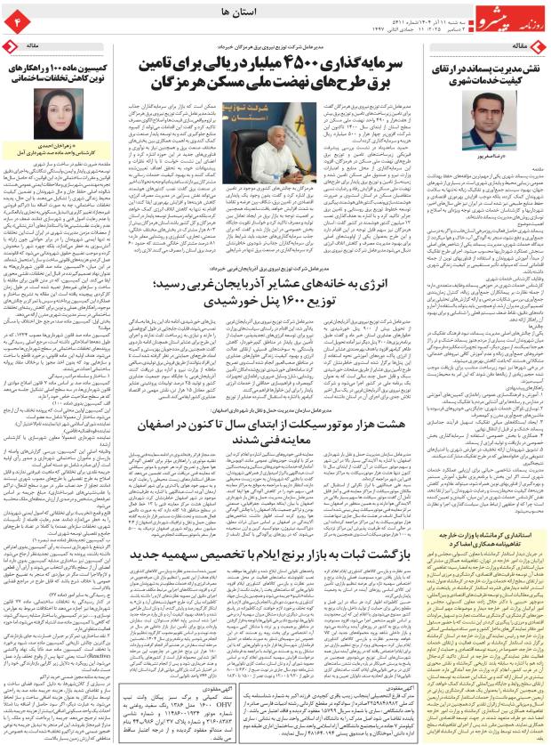 ۱۴۰۴ چهارشنبه ۱۳ آذر - شماره 5411