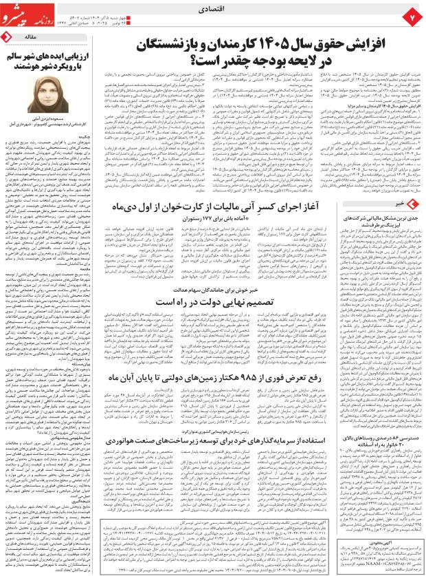 ۱۴۰۴ چهارشنبه ۶ آذر - شماره 5407
