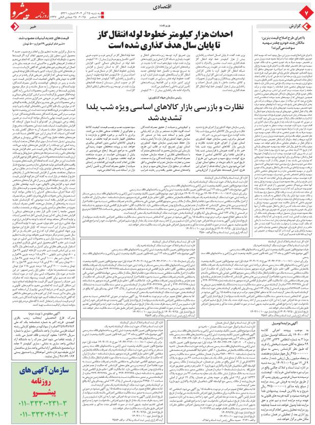 ۱۴۰۴ سه شنبه ۲۶ آذر - شماره 5421